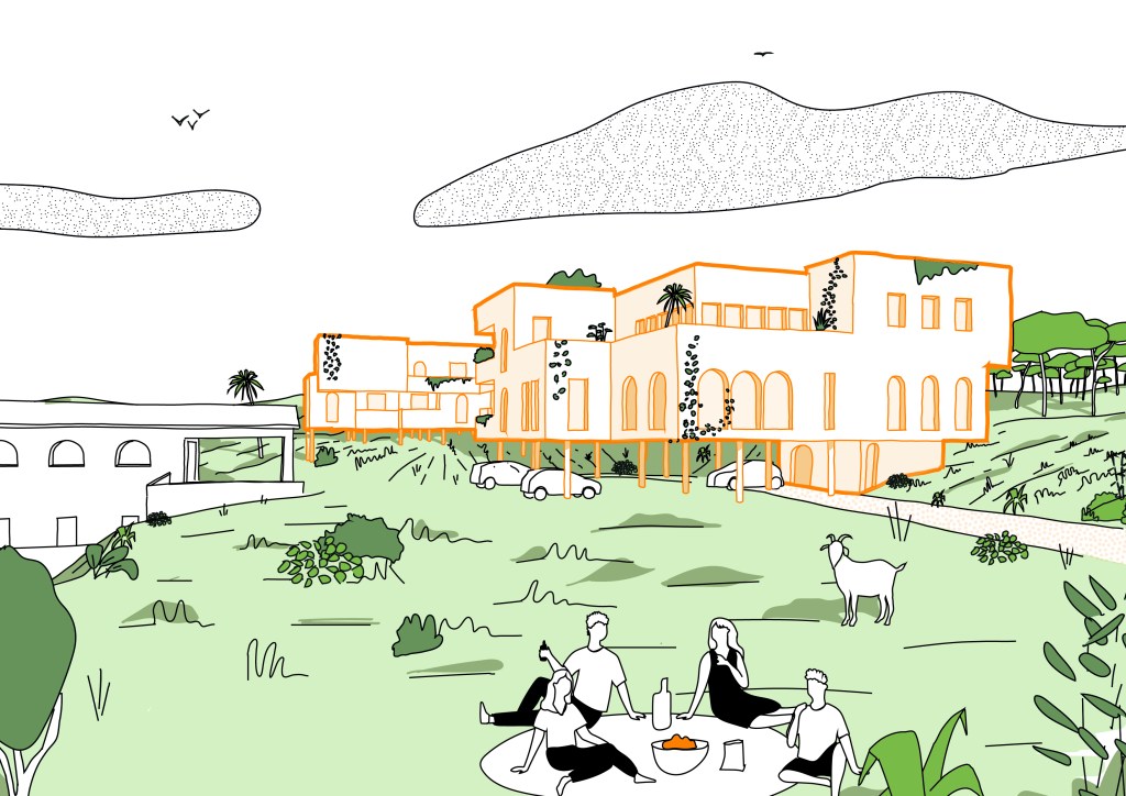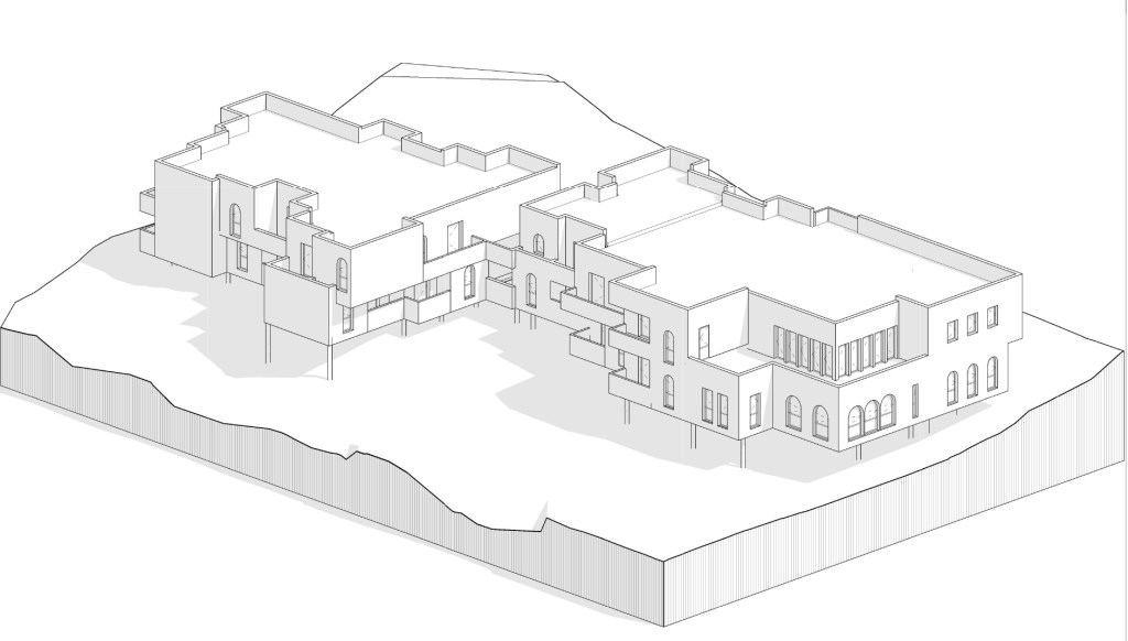 Cette étude s’inscrit dans un contexte urbanistique très contraint. Le PLU limitant les affouillements, le projet se développe sur pilotis. Pour casser l’effet de masque du volume qui s’implante en haut de pente, ce dernier a été savament ciselé. En résulte une architecture complexe, organique qui s’exprime aussi par la variété des menuiseries de façade. Les espaces créés rompent avec la monotonie parfois retrouvée dans les logement collectifs séniors. Les jeux de débords et de terrasse sont autant d’occasion pour développer une végétation abondante et rafraichissante. Les habitants bénéficieront ainsi d’espaces extérieurs en plus des services bien-être, restauration et fitness.