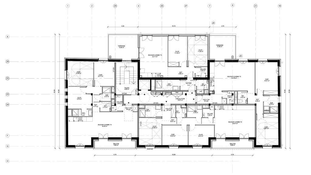 Cette rénovation, va au-delà de la RT 2012 s’appliquant aux bâtiments existants et prévoit l’isolation des façades par l’extérieur. L’opération se veut exemplaire du point de vue du bilan carbone grâce à la conservation de l’intégralité de la structure existante, le maintien des menuiseries extérieures de qualité et l’utilisation du bois tant pour la structure que pour les parements.